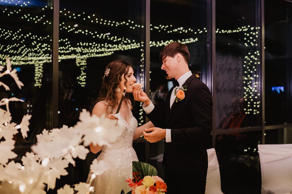 The reception was held at a nearby venue in Trinity Park, Blue Water, and it was an incredible celebration. Hannah and Joey's first dance was a highlight of the night - they were surrounded by giant sparklers, which were a surprise gift from the bride's dad.